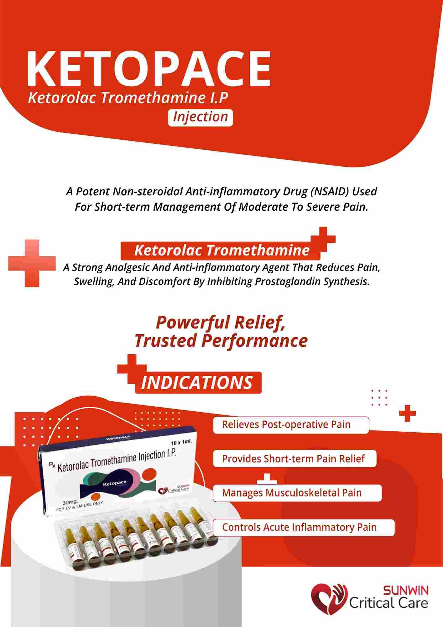 Ketopace Injection contains Ketorolac Tromethamine, a non-steroidal anti-inflammatory drug (NSAID).